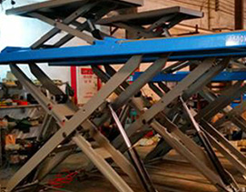 ◆ 8 cylinders, double hydraulic balance system(main lift)and mechanical safety with automatic unlock are equipped